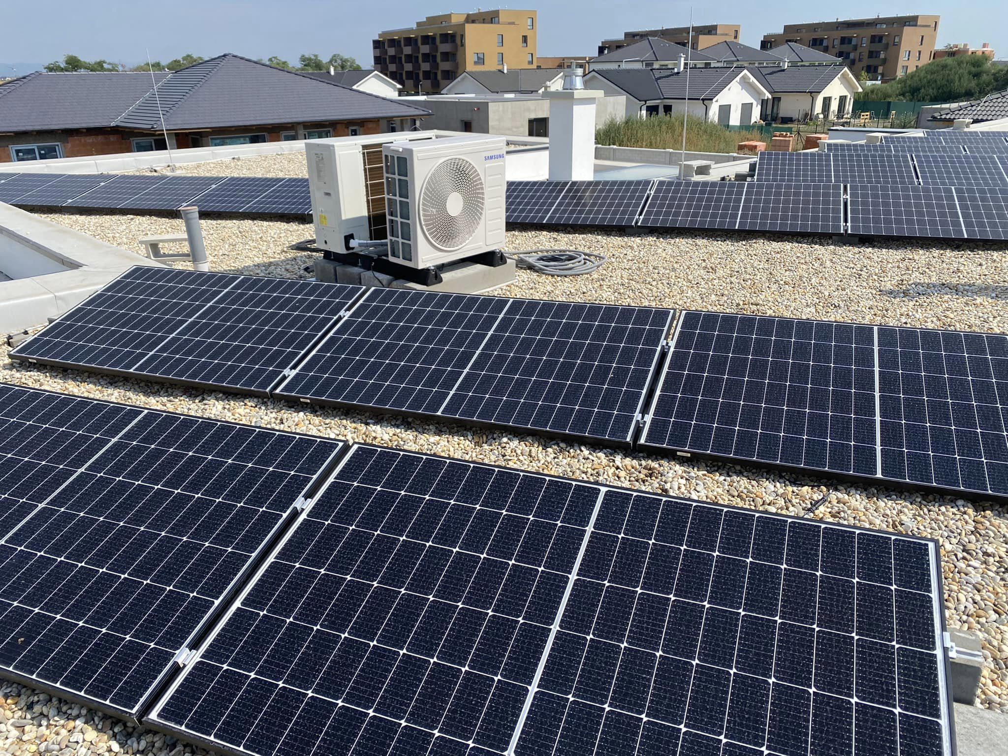 Neoddeliteľnou súčasťou moderného vykurovania a chladenia je efektívne využitie inak nevyužitých plôch stavieb na výrobu elektrickej energie zo slnečného žiarenia. Na výrobu elektrickej energie zo slnka sa využívajú fotovoltické panely, ktoré sa inštalujú prevažne na streche stavby.
